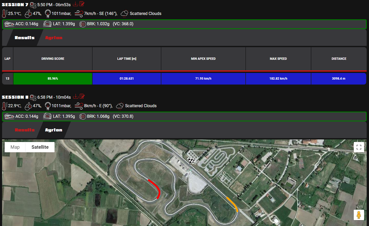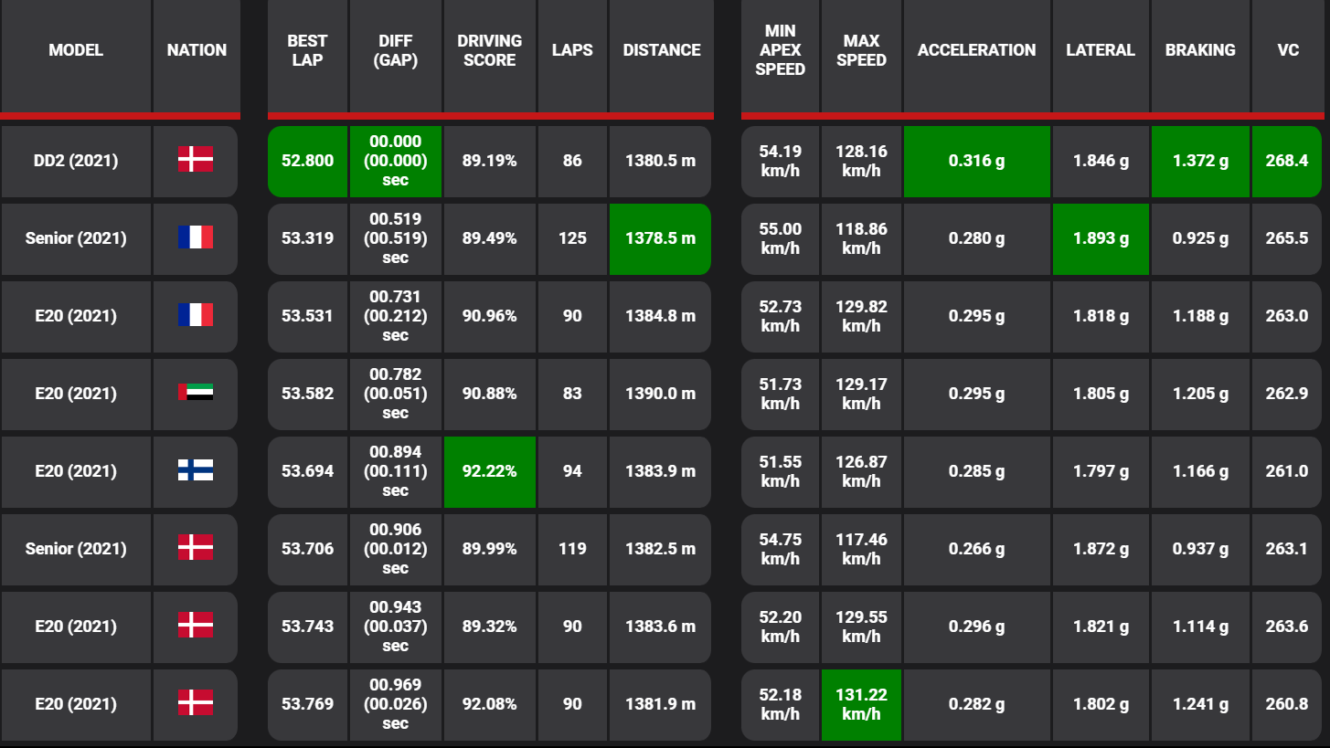Vehicle dynamics data of each session are being recorded from any highly accurate GNSS module.