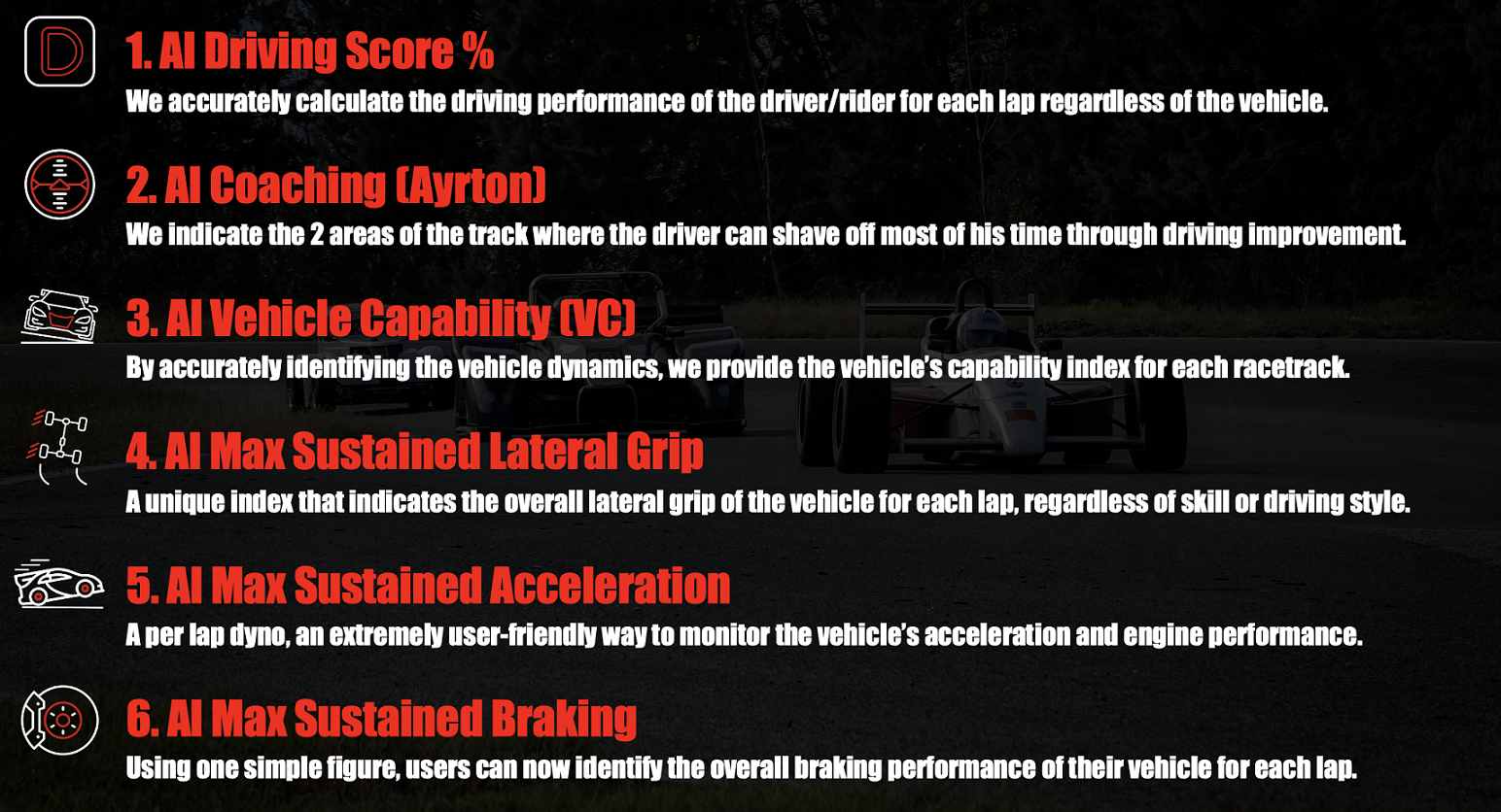 Unique AI Coaching feature – user friendly and straight forward. Driver knows where to improve at the next session.