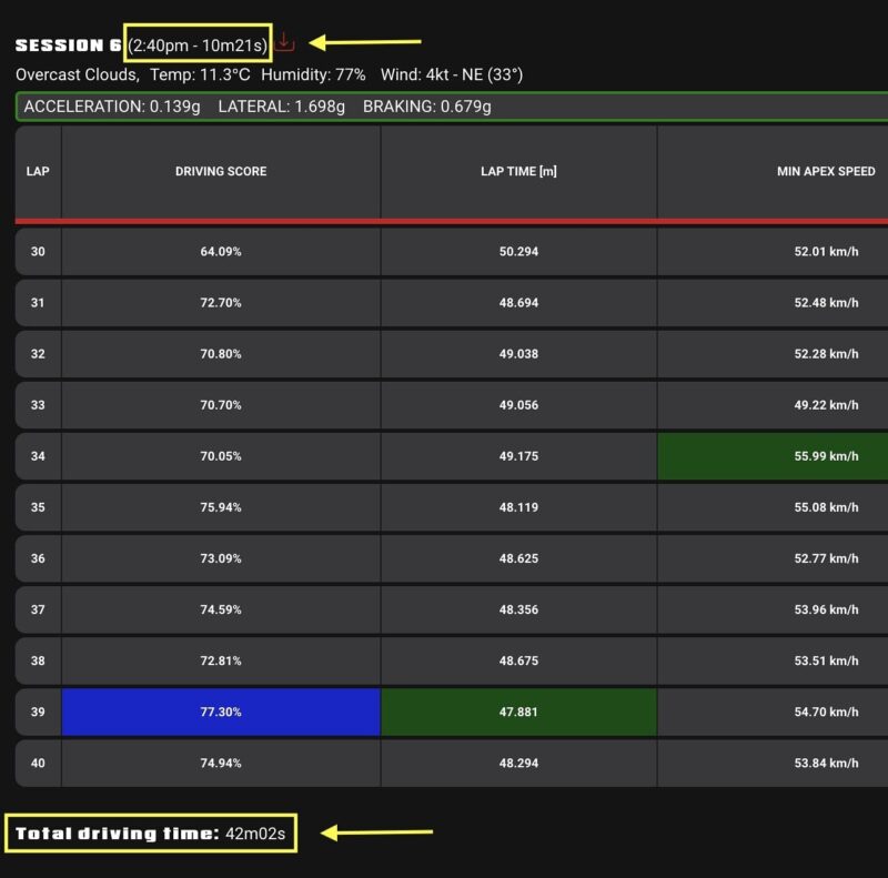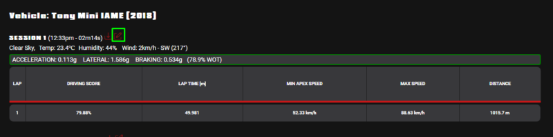 Consider WOT as a very good indication of the vehicle’s power/grip ratio for each driving session.